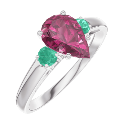 « L'ATELIER » N. 165884Anello Oro bianco 9 carati - Rubino Goccia 0.7 Carati - Pietre laterali Smeraldo