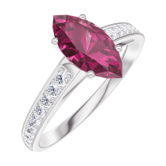 Anello Oro bianco 9 carati - Rubino Marchesa 0.7 Carati - Incastonatura Diamante