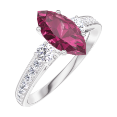 Anello Oro bianco 18 carati - Rubino Marchesa 0.7 Carati - Pietre laterali Diamante - Incastonatura Diamante