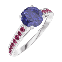 « L'ATELIER » N. 166012Anello Oro bianco 9 carati - Zaffiro blu Rotonda 0.7 Carati - Incastonatura Rubino 5