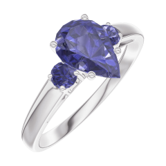 Anello Oro bianco 18 carati - Zaffiro blu Goccia 0.7 Carati - Pietre laterali Zaffiro blu