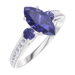 Anello Oro bianco 18 carati - Zaffiro blu Marchesa 0.7 Carati - Pietre laterali Zaffiro blu - Incastonatura Diamante