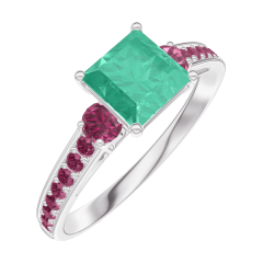 Anello Oro bianco 18 carati - Smeraldo Principessa 0.7 Carati - Pietre laterali Rubino - Incastonatura Rubino