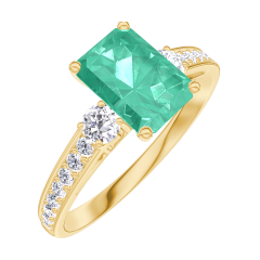 Anello Oro giallo 18 carati - Smeraldo Rettangolo 0.7 Carati - Pietre laterali Diamante - Incastonatura Diamante
