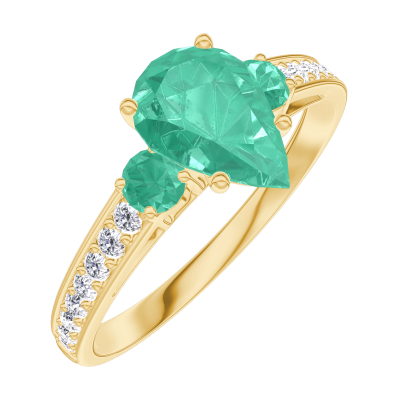 « L'ATELIER » N. 167085Anello Oro giallo 18 carati - Smeraldo Goccia 0.7 Carati - Pietre laterali Smeraldo - Incastonatura Diamante
