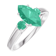Anello Oro bianco 9 carati - Smeraldo Marchesa 0.7 Carati - Pietre laterali Smeraldo