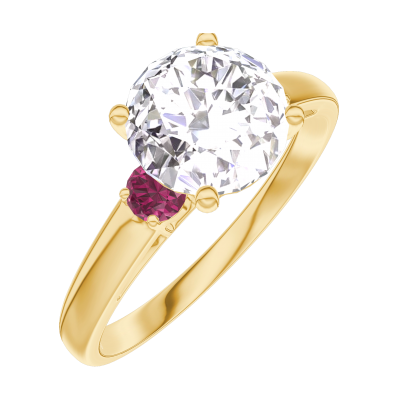 « L'ATELIER » Nº167241Anello Oro giallo 18 carati - Diamante Rotonda 1 Carati - Pietre laterali Rubino 4.9