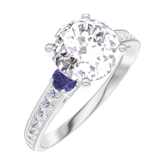 Anello Oro bianco 18 carati - Diamante Rotonda 1 Carati - Pietre laterali Zaffiro blu - Incastonatura Diamante