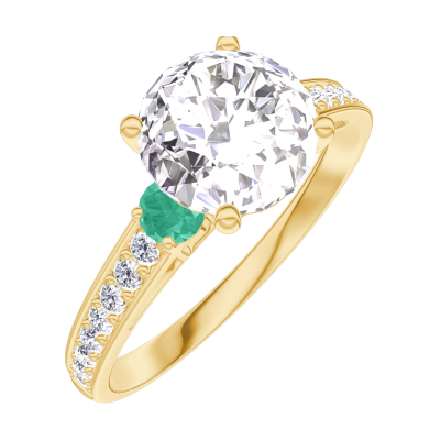« L'ATELIER » Nº167285Anello Oro giallo 18 carati - Diamante Rotonda 1 Carati - Pietre laterali Smeraldo - Incastonatura Diamante 4.9