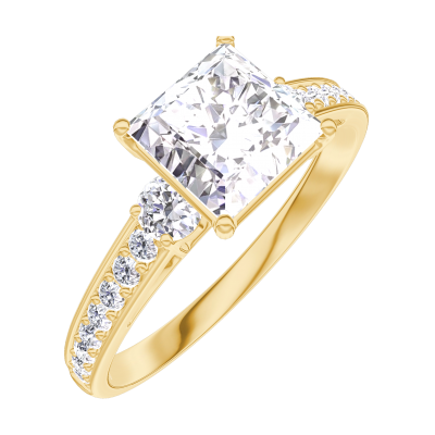« L'ATELIER » N. 167326Anello Oro giallo 9 carati - Diamante Principessa 1 Carati - Pietre laterali Diamante - Incastonatura Diamante
