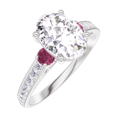 « L'ATELIER » N. 167547Anello Oro bianco 18 carati - Diamante Ovale 1 Carati - Pietre laterali Rubino - Incastonatura Diamante 4.8