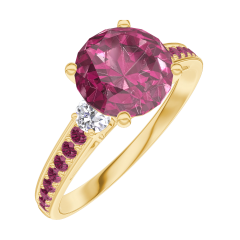 Anello Oro giallo 18 carati - Rubino Rotonda 1 Carati - Pietre laterali Diamante - Incastonatura Rubino