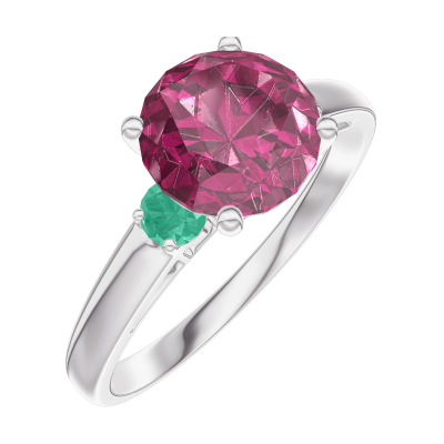 « L'ATELIER » N. 167883Anello Oro bianco 18 carati - Rubino Rotonda 1 Carati - Pietre laterali Smeraldo 4.9