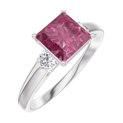 Anello Oro bianco 9 carati - Rubino Principessa 1 Carati - Pietre laterali Diamante