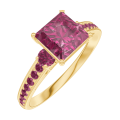 Anello Oro giallo 18 carati - Rubino Principessa 1 Carati - Pietre laterali Rubino - Incastonatura Rubino