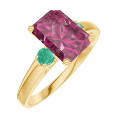 Anello Oro giallo 9 carati - Rubino Rettangolo 1 Carati - Pietre laterali Smeraldo