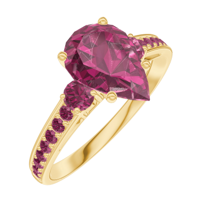 « L'ATELIER » N. 168250Anello Oro giallo 9 carati - Rubino Goccia 1 Carati - Pietre laterali Rubino - Incastonatura Rubino
