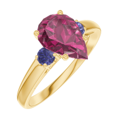 Anello Oro giallo 18 carati - Rubino Goccia 1 Carati - Pietre laterali Zaffiro blu