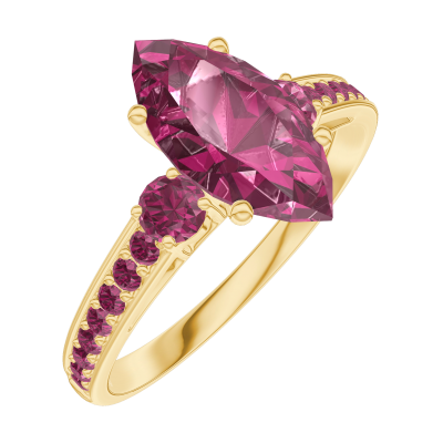 « L'ATELIER » N. 168350Anello Oro giallo 9 carati - Rubino Marchesa 1 Carati - Pietre laterali Rubino - Incastonatura Rubino