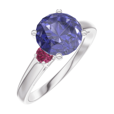 « L'ATELIER » N. 168444Anello Oro bianco 9 carati - Zaffiro blu Rotonda 1 Carati - Pietre laterali Rubino 4.9