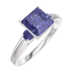 Anello Oro bianco 18 carati - Zaffiro blu Principessa 1 Carati - Pietre laterali Zaffiro blu