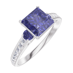 Anello Oro bianco 18 carati - Zaffiro blu Principessa 1 Carati - Pietre laterali Zaffiro blu - Incastonatura Diamante