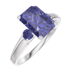 Anello Oro bianco 9 carati - Zaffiro blu Rettangolo 1 Carati - Pietre laterali Zaffiro blu