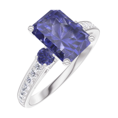 Anello Oro bianco 18 carati - Zaffiro blu Rettangolo 1 Carati - Pietre laterali Zaffiro blu - Incastonatura Diamante