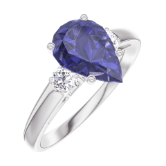 Anello Oro bianco 9 carati - Zaffiro blu Goccia 1 Carati - Pietre laterali Diamante
