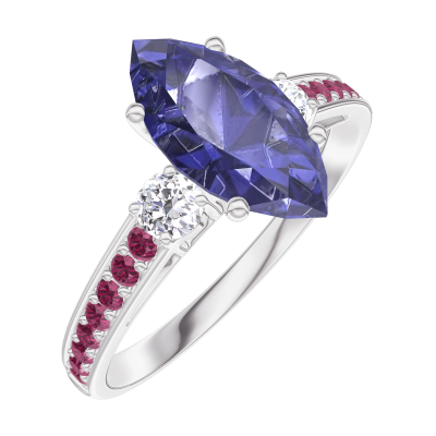 « L'ATELIER » Nº168931Anello Oro bianco 18 carati - Zaffiro blu Marchesa 1 Carati - Pietre laterali Diamante - Incastonatura Rubino