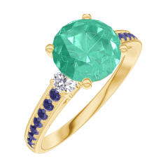 « L'ATELIER » N. 169034Anello Oro giallo 9 carati - Smeraldo Rotonda 1 Carati - Pietre laterali Diamante - Incastonatura Zaffiro blu 4.9