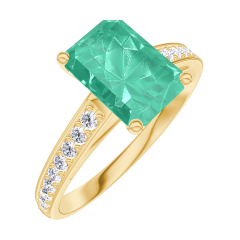 Anello Oro giallo 9 carati - Smeraldo Rettangolo 1 Carati - Incastonatura Diamante
