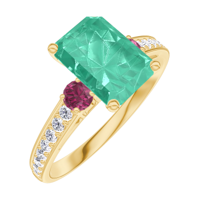 « L'ATELIER » Nº169245Anello Oro giallo 18 carati - Smeraldo Rettangolo 1 Carati - Pietre laterali Rubino - Incastonatura Diamante 4.6