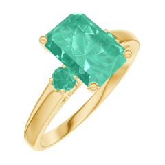 Anello Oro giallo 18 carati - Smeraldo Rettangolo 1 Carati - Pietre laterali Smeraldo