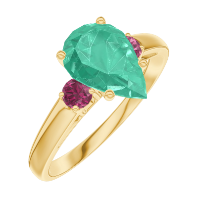 « L'ATELIER » Nº169441Anello Oro giallo 18 carati - Smeraldo Goccia 1 Carati - Pietre laterali Rubino