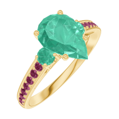Anello Oro giallo 18 carati - Smeraldo Goccia 1 Carati - Pietre laterali Smeraldo - Incastonatura Rubino