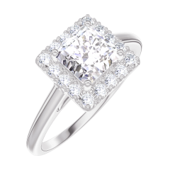 Anello Oro bianco 9 carati - Diamante Principessa 0.5 Carati - Halo Diamante