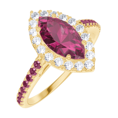 Anello Oro giallo 9 carati - Rubino Marchesa 0.5 Carati - Halo Diamante - Incastonatura Rubino