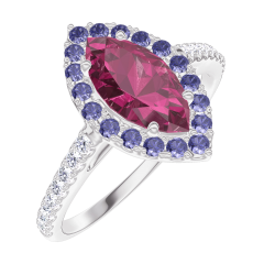 Anello Oro bianco 18 carati - Rubino Marchesa 0.5 Carati - Halo Zaffiro blu - Incastonatura Diamante