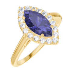 Anello Oro giallo 18 carati - Zaffiro blu Marchesa 0.5 Carati - Halo Diamante