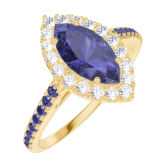 Anello Oro giallo 9 carati - Zaffiro blu Marchesa 0.5 Carati - Halo Diamante - Incastonatura Zaffiro blu
