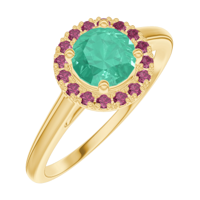 « L'ATELIER » Nº170881Anello Oro giallo 18 carati - Smeraldo Rotonda 0.5 Carati - Halo Rubino 5