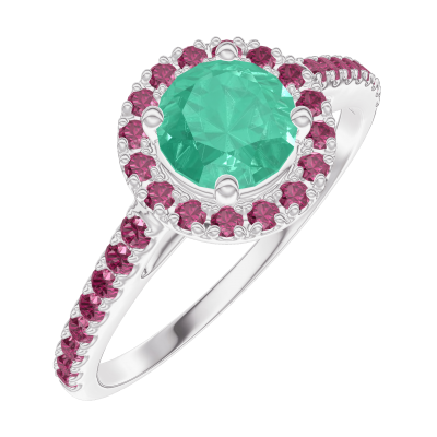 « L'ATELIER » Nº170891Anello Oro bianco 18 carati - Smeraldo Rotonda 0.5 Carati - Halo Rubino - Incastonatura Rubino 5