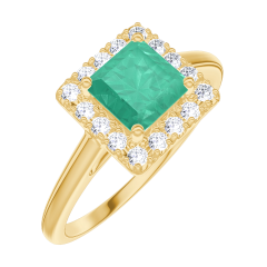 Anello Oro giallo 18 carati - Smeraldo Principessa 0.5 Carati - Halo Diamante