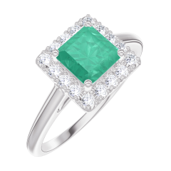 Anello Oro bianco 9 carati - Smeraldo Principessa 0.5 Carati - Halo Diamante