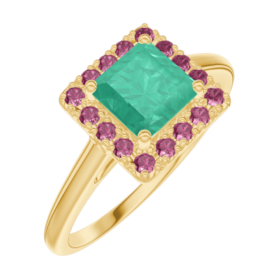 « L'ATELIER » Nº170930Anello Oro giallo 9 carati - Smeraldo Principessa 0.5 Carati - Halo Rubino 4.6