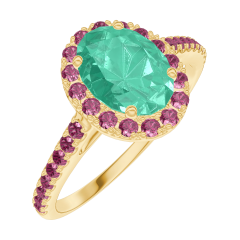 Anello Oro giallo 9 carati - Smeraldo Ovale 0.5 Carati - Halo Rubino - Incastonatura Rubino
