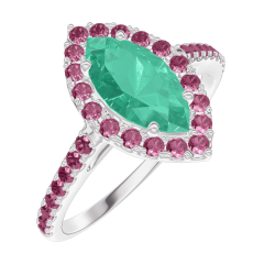 Anello Oro bianco 9 carati - Smeraldo Marchesa 0.5 Carati - Halo Rubino - Incastonatura Rubino