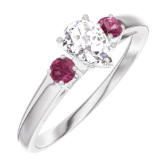 Anello Oro bianco 9 carati - Diamante di laboratorio Goccia 0.3 Carati - Pietre laterali Rubino