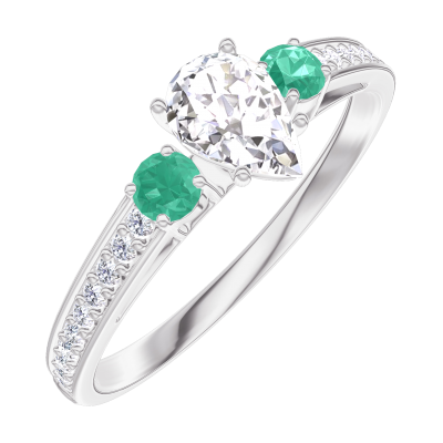 « L'ATELIER » Nº180488Anello Oro bianco 9 carati - Diamante di laboratorio Goccia 0.3 Carati - Pietre laterali Smeraldo - Incastonatura Diamante di laboratorio